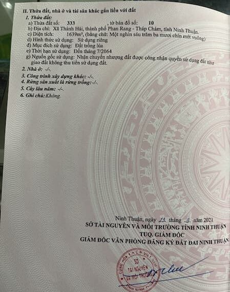 - Vị trí: Đất thuộc xã Thành Hải, thành phố Phan Rang Tháp Chàm, Ninh Thuận.