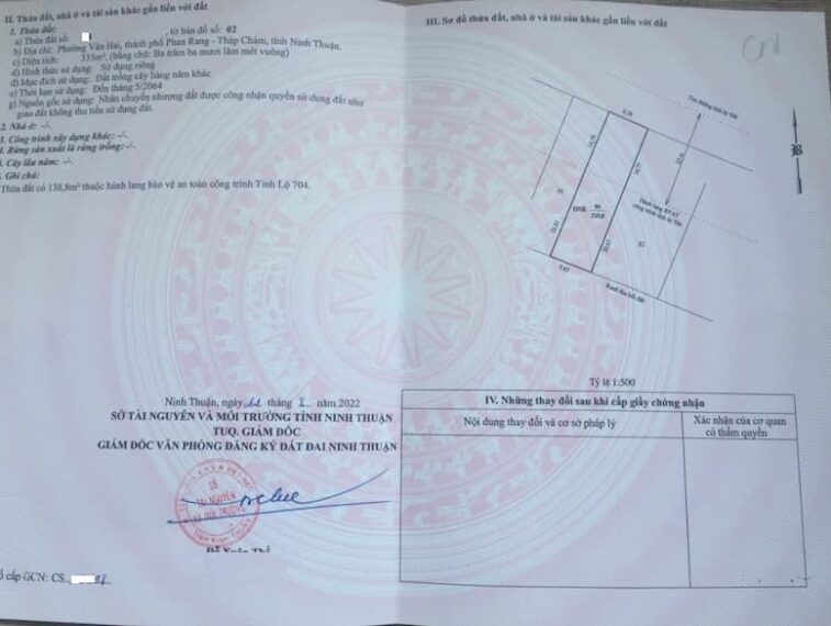 - Vị trí: Đất mặt tiền tỉnh lộ 704, thuộc phường Văn Hải, thành phố Phan Rang Tháp Chàm, Ninh Thuận.