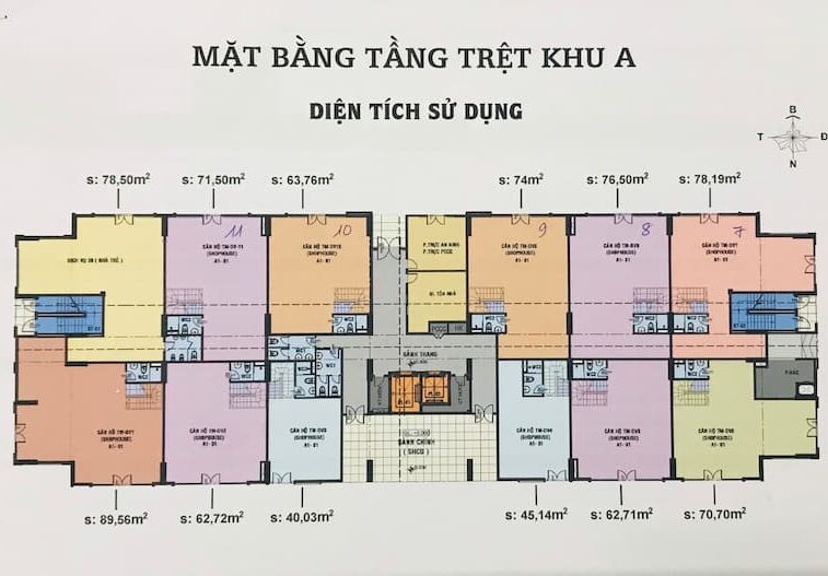 - Diện tích căn hộ: Tầng trệt (diện tích từ 48 – 78m2 ), Tầng lững (diện tích từ 42 – 59m2 )