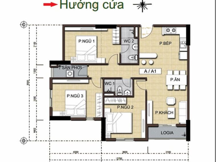 - Diện tích căn hộ: 78,21m2. Gồm 1 phòng khách, 3 phòng ngủ, 2 nhà vệ sinh, Logia, Sân phơi.