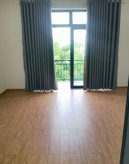 + Phòng ngủ: Sàn gỗ ấm cúng, cửa kính lớn đón ánh sáng tự nhiên, view nhìn ra khu vực cây xanh thoáng mát, có sẵn rèm cửa.