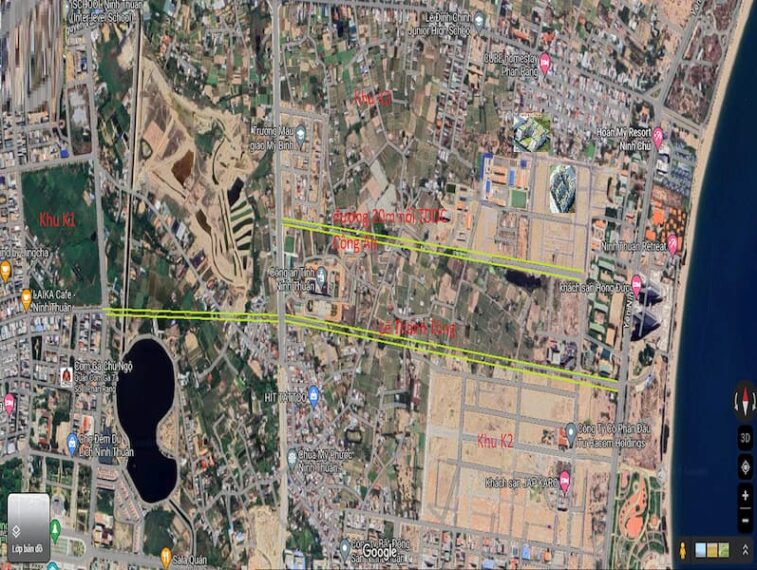 - Lô đất mặt tiền đường 12m, lề 3m, gần trường, dự án chung cư nhà ở xã hội Hacom khu K2, cách biển Bình Sơn chỉ 500m. Cách trung tâm thành phố Phan Rang Tháp Chàm, siêu thị Vincom, chợ, bệnh viện tỉnh chỉ 5 – 10 phút đi xe.