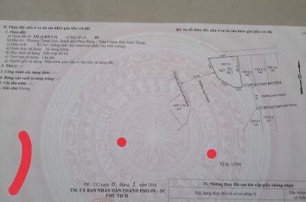 Diện tích: 105,77m2 (ngang 6,3m. chiều dài 17m) Vị trí: Mặt tiền đường Phạm Ngũ Lão, KDC Phước Mỹ 2, phường Phước Mỹ, Tp. Phan Rang Tháp Chàm, Ninh Thuận. Loại.