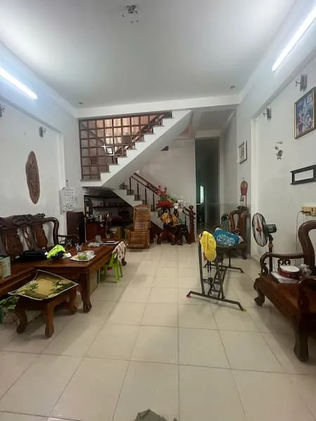 - Nhà gồm: Nhà trước 1 trệt 1 lầu, 1 phòng khách, 3 phòng ngủ, 1 bếp, 2 phòng vệ sinh, có sân đậu ô tô có mái che.